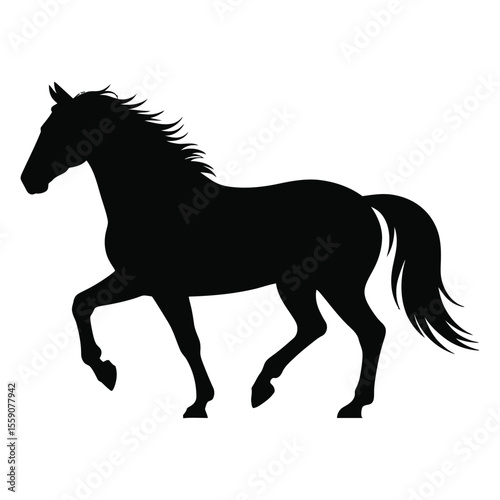 Black Silhouette of a Horse in Motion Elegant Equine Profile Side View Galloping Stallion
