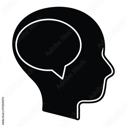 Black silhouette of a human head with a white outline speech bubble inside head silhouette