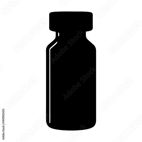Black silhouette of a medication vial, representing vaccines and medical supplies
