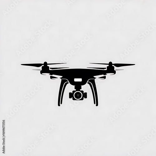 Black silhouette of a modern drone with a camera, isolated on a white background