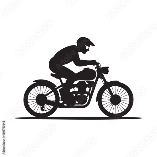Black silhouette of a person riding a motorcycle rider vector