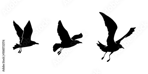 Black silhouette of a petrel spreading its wings and flapping its wings icon illustration