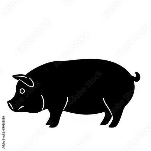 Black Silhouette of a Pig in a Minimalist Vector Illustration