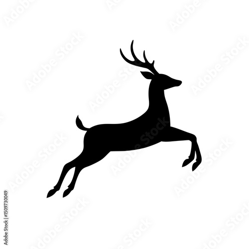 Black Silhouette Of a Side View Deer Leaping Through Forest vector illustration