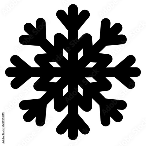 Black Silhouette of a Snowflake on White Background Represents Winter Season