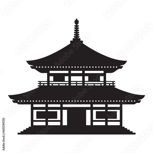 Black silhouette of a traditional Japanese building icon. Vector black silhouette. with white background