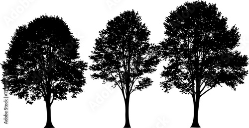Black silhouette of a tree on white background. Minimalist and elegant natural shape, perfect for design projects, nature illustrations, logos, tattoo references, and decorative artistic compositions.