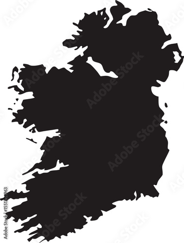 Black silhouette of the island of ireland on a white background illustrating ireland's outline for educational purposes and geopolitical design