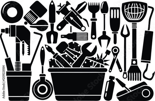 black silhouette set tools icons vector illustration