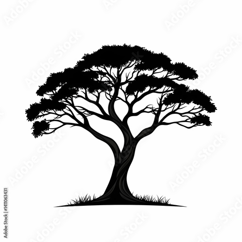 Black Silhouette Tree Vector Image. Botanical Illustration for Eco-Friendly Nature Art and Environmental Conservation