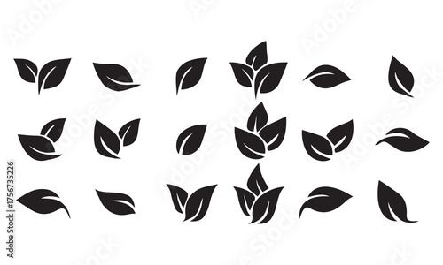 Black silhouettes and icons of leaves and plants in a nature vector set