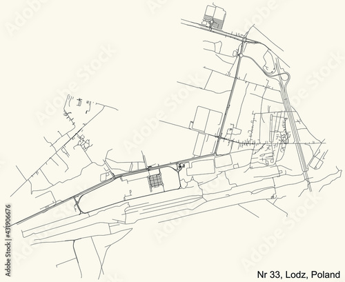 Black simple detailed street roads map on vintage beige background of the quarter Osiedle nr 33 district of Lodz, Poland