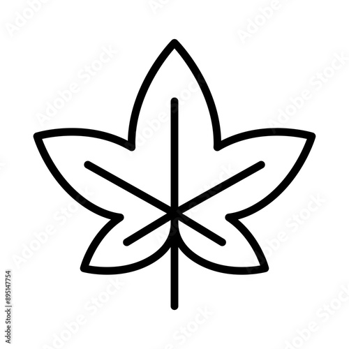 Black single maple leaf line icon, simple festival plant element outline flat design pictogram, infographic vector for app logo web button ui ux interface isolated on white background