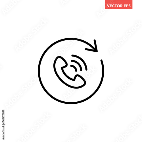 Black single recall line icon, simple call back technology flat design pictogram vector for app logo ads web webpage button ui ux interface elements isolated on white background