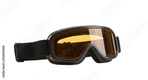 Black ski goggles with orange lens isolated on white background