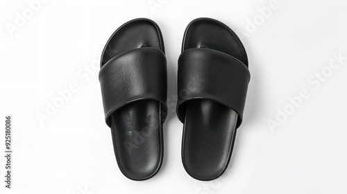 Black slip-on sandals isolated against a white background. A label-free, blank mockup of your logo design. For women, men, and children, Generative AI.