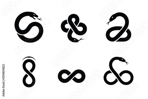 Black snake silhouettes forming infinity symbols and abstract shapes vector