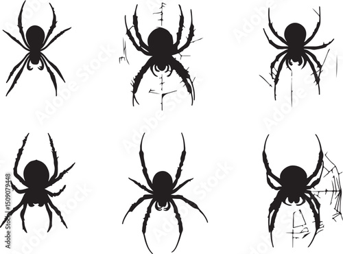 Black Spider Silhouettes Vector Graphics Set: Halloween Clip Art, Spiderweb Design Elements