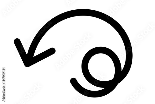 Black spiral curved arrow. Circular loop direction symbol. Return refresh back indicator. Hand drawn arrow on transparent background