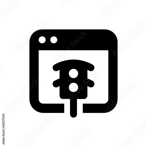 Black square icon displaying a stylized wifi signal with two circles at the top left corner of the square