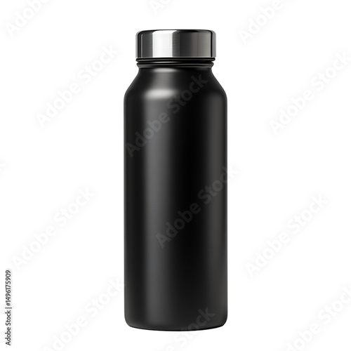 Black stainless steel water bottle isolated on transparent background