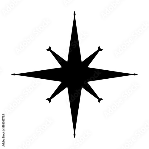 Black Star with Pointed and Rounded Tips, Minimalist Design on White Background