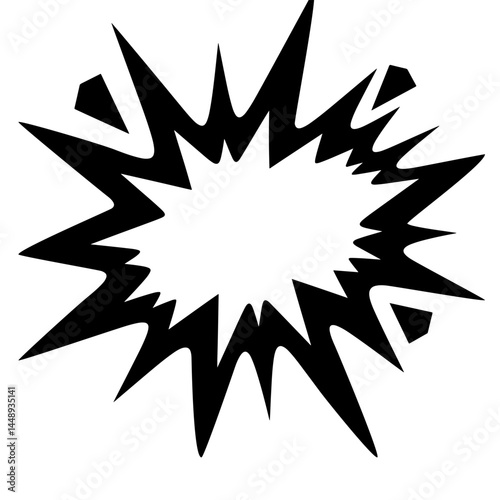 Black starburst vector illustration, explosion shape, comic book style, graphic design element, isolated on white background.