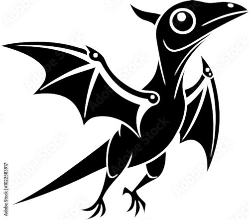 Black Stencil Flying Dinosaur Cartoon Clipart for Kids.