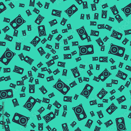 Black Stereo speaker icon isolated seamless pattern on green background. Sound system speakers. Music icon. Musical column speaker bass equipment. Vector
