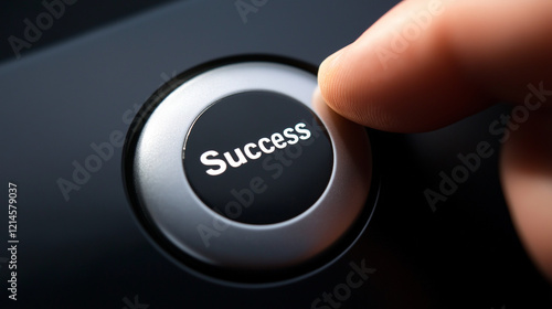 Black Success button with metallic finish in low-key lighting. Perfect for corporate achievement and professional development materials