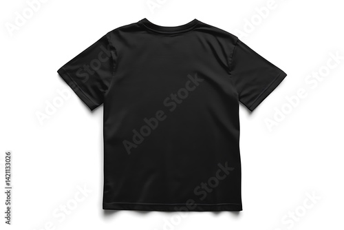 Black T Shirt Isolated On White Background With Simple Design In Studio