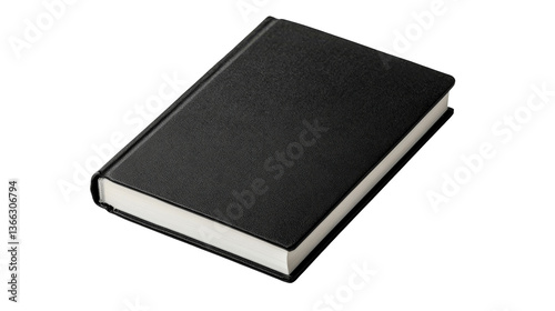 Black textured notebook, closed book with blank pages, cut out transparent