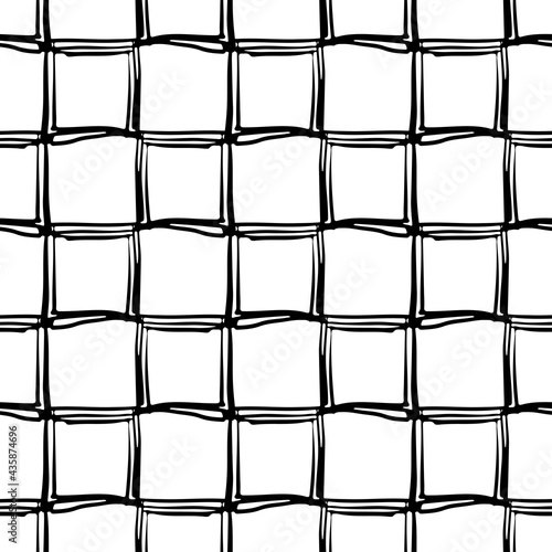 Black thin contour linear ink squares isolated on white background. Tiled monochrome geometric seamless pattern. Vector simple flat graphic hand drawn illustration. Texture.
