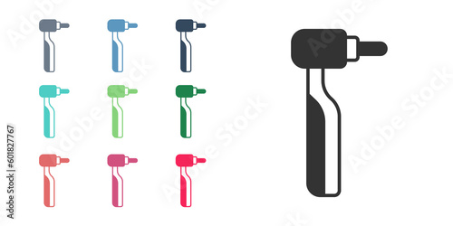 Black Tooth drill icon isolated on white background. Dental handpiece for drilling and grinding tools. Set icons colorful. Vector