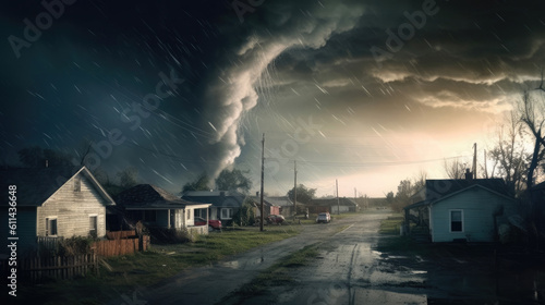 Black tornado funnel and lightning, Generative AI