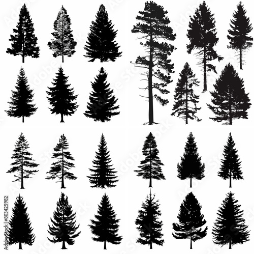 black tree silhouette set pure badge eco outline recreation breath emblem label protection graphic pine trunk woodland