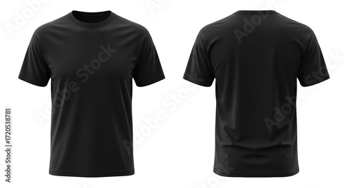 Black TShirt Front and Back View creative illustration featuring casual, garment, front, simple, space, isolated modern
