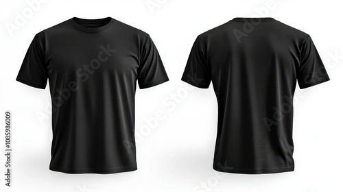 Black t-shirt front and back view, isolated on a white background for mock-up design templates.