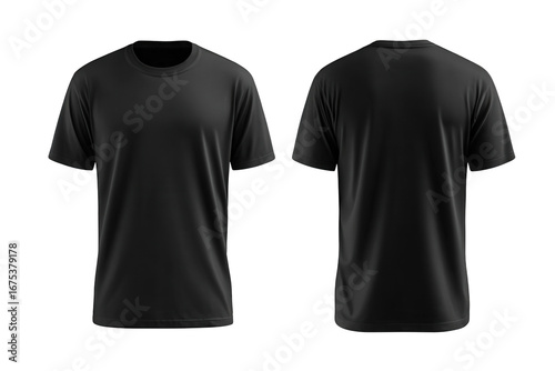 Black T-Shirt Mockup: Front and Back Views on Transparent Background