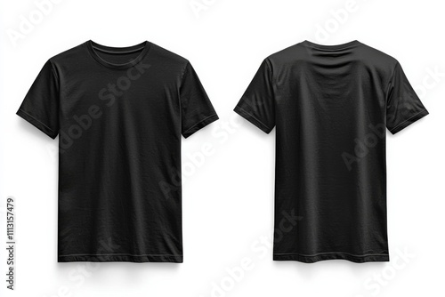 Black T-shirt Mockup with Front and Back View on Isolated White Background