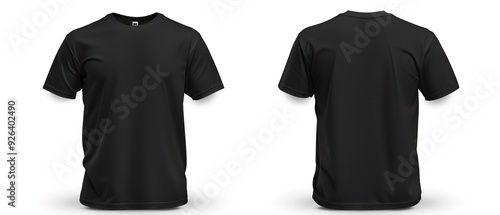 Black T-shirt template mockup, front and back view, isolated on a white background.