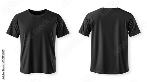 Black T-shirt template mockup on a white background, front and back view