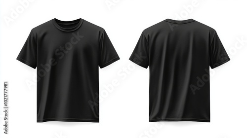 Black t-shirts front and back view. T-shirts design template isolated on white background.