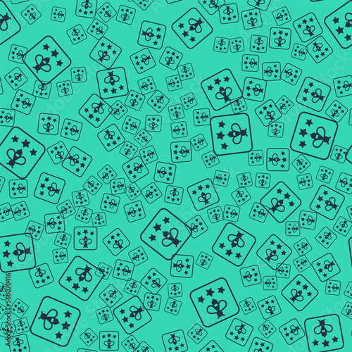 Black Type of bee icon isolated seamless pattern on green background. Sweet natural food. Honeybee or apis with wings symbol. Flying insect. Vector
