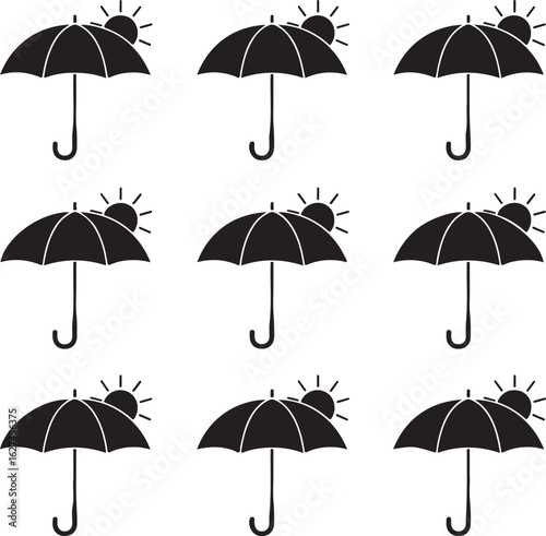 Black umbrellas with sun icons protection weather