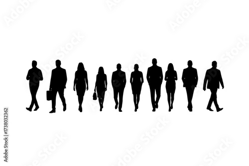 Black Vector Silhouette: Diverse Group of Business Professionals Walking