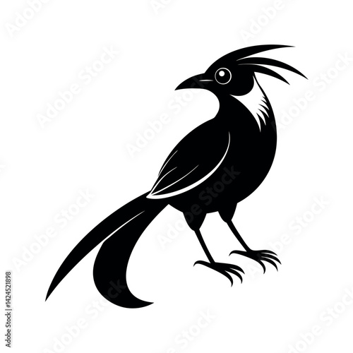 Black Vector Silhouette of Cute Motmot Bird on White Background