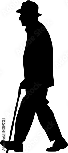 Black vector Silhouette off a old man walking with a cane