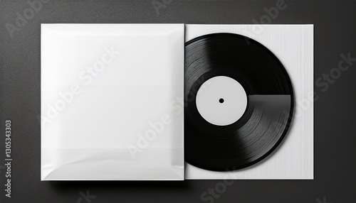 black vinyl record in white carton sleeve template for mockup partially in sleeve