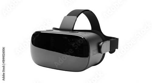 Black virtual reality headset with adjustable strap and lenses on black background goggles, Isolated On Png Transparent Background
